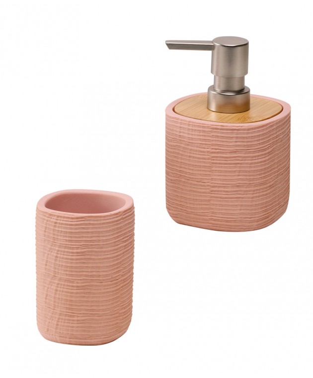 Τοποθετήστε πάνω το μοντέρνο σετ με δοχείο οδοντόβουρτσας και κρεμοσάπουνου σε παστέλ, γήινες και ουδέτερες αποχρώσεις, με patterns ή χωρίς αλλά και τη βαμβακοθήκη σας.